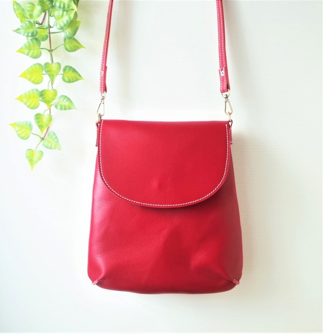 ⚫受注制作となります。 ⚫発送までの目安は、お支払い後の最長25日です。 。。。。。。。。。。。。。。。。。。。。。。。。。。。 ※【ショルダーの変更が可能です】 標準は、(画像9枚目参照) 1.5センチ幅の3段階調節のベルト式を採用しておりますが、 ⇒「調整カン式 ショルダーベルト * 調整幅・約130㎝~約72㎝* 1.5センチ幅」への ご変更が可能です。(画像10枚目参照) ※ご変更を希望される場合は、ご注文時に「備考欄」よりお知らせください ・・・・・・・・・・・・・・・・・・・・・・・・・・・・・・・・・ 【 個性を楽しむ… 】 ~ぽってりとしたフォルム~ シンプルなポシェットながら、随所に遊び心を入れた 『 牛革 ショルダータイプのポシェット 』です。 …マグネット部の革の形状まで個性的… ・・・・・・・・・・・・・・・・・・・・・・・・・・・・・・・・・ 【 革 】 ~赤ワイン~ 洗練された印象を与えつつも、落ち着きがあるため、 様々なシーンで使いやすい色 クロム鞣しとタンニン分の絶妙な組み合わせで作られた コンビネーション鞣しの国産牛革(たつのレザー)を使用しています。 il legameオリジナル色、 顔料でしっかりコーティングされた、雰囲気の良い「赤ワイン」色です。 ・・・・・・・・・・・・・・・・・・・・・・・・・・・・・・・・・ 【 本体サイズ 】 横幅:(一番長い所で)約23cm(一番短い所で)約19cm 縦幅:約25cm マチ:約5.5cm 【ショルダー・標準仕様 】 1.5センチ幅の3段階調節のベルト式 最短:約111.5cm ~ 最長:約120.5cm 【 収納 】 最低限の収納力は確保♪ 小さなお財布~長財布、スマホ(携帯電話)、鍵などの小物、 お気に入りの本(A5サイズのものも入ります!) などを入れて! 身軽にお出かけするのに最適なポシェットです。 背面にも ポケットが1箇所 ありますので、 かさばらないものをさっと取り出すのに役立つ、便利なポケットとなっております♪ 開閉部は マグネット式 となっています。 ※撮影用で収納例として収納したものは、スマートフォン・長財布・カードケース・ハンカチです。 (スペースにはまだ余裕があります) ショルダーバッグのみの販売となりますので、予めご了承ください。 ・・・・・・・・・・・・・・・・・・・・・・・・・・・・・・・・・・