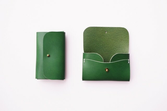 ⚫発送までの目安は、お支払い後の最長8日です。 ・・・・・・・・・・・・・・・・・・・・・・・・・・・・・・・・・ ~シンプルでスマート~ 名刺入れ・カードケースです。 ・・・・・・・・・・・・・・・・・・・・・・・・・・・・・・・・・ 【 革 】 ~森林グリーン~ 木漏れ日の中で、静かに寄り添うような色合い。 自然と調和するやすらぎのグリーン。 クロム鞣しとタンニン分の絶妙な組み合わせで作られた コンビネーション鞣しの国産牛革(たつのレザー)を使用しています。 好きな色に囲まれて、より楽しく作りたいとの思いから、特注で作りました。 il legameオリジナルの雰囲気の良い『 森林グリーン色 』です。 ・・・・・・・・・・・・・・・・・・・・・・・・・・・・・・・・・ この名刺入れ・カードケースは、直感から生まれたものです。 シンプルで可愛らしい、それでいてきちんとした作りの作品となってくれました。 普段使いのカジュアルなシーンで… 遊び心のあるビジカジスタイルにも… また、かわいい主婦の日頃お使いになるカード類収納などに… どんなシーンでも活躍してくれそうです 名刺入れとしてお使いいただく場合、お名刺の厚みによりますが、約30枚程度の収納が可能です。 カード類入れとしてお使い頂く場合は、厚みによりますが、約10枚~15枚程度の収納が可能です。 ・・・・・・・・・・・・・・・・・・・・・・・・・・・・・・・・・・・ ■ 革のお色 ■ 森林グリーン ■ ステッチのお色 ■ ホワイト ■ 素材 ■ 牛革 (国産) ■ サイズ ■ 約11cm × 約6.5cm ・・・・・・・・・・・・・・・・・・・・・・・・・・・・・・・・・・・ ・・購入の際の注意点・・ ・天然皮革を使っておりますので、色落ち、小さなキズ、汚れ等がある場合がございます。一点ずつ異なる本革の証としてご理解下さい。 また、気になる方はご購入をお控え下さい。 ・製作の段階で各工程において縫製など細心の注意を払って製作しておりますが、縫製のラインのわずかなズレ等、至らない部分もある場合があります。あらかじめ、ご了承ください。