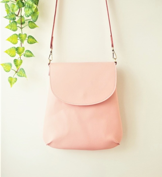 ⚫受注制作となります。 ⚫発送までの目安は、お支払い後の最長25日です。 。。。。。。。。。。。。。。。。。。。。。。。。。。。 ※【ショルダーの変更が可能です】 標準は、(画像9枚目参照) 1.5センチ幅の3段階調節のベルト式を採用しておりますが、 ⇒「調整カン式 ショルダーベルト * 調整幅・約130㎝~約72㎝* 1.5センチ幅」への ご変更が可能です。(画像10枚目参照) ※ご変更を希望される場合は、ご注文時に「備考欄」よりお知らせください ・・・・・・・・・・・・・・・・・・・・・・・・・・・・・・・・・ 【 個性を楽しむ… 】 ~ぽってりとしたフォルム~ シンプルなポシェットながら、随所に遊び心を入れた 『 牛革 ショルダータイプのポシェット 』です。 …マグネット部の革の形状まで個性的… ・・・・・・・・・・・・・・・・・・・・・・・・・・・・・・・・・ 【 革 】 桜(サクラ)、春をイメージさせる色合い 一年中通して心地良くさせる、il legame 1 番人気の 桜ピンク色 クロム鞣しとタンニン分の絶妙な組み合わせで作られた コンビネーション鞣しの国産牛革(たつのレザー)を使用しています。 il legameオリジナル色、 顔料でしっかりコーティングされた、雰囲気の良い「桜ピンク」色です。 ・・・・・・・・・・・・・・・・・・・・・・・・・・・・・・・・・ 【 本体サイズ 】 横幅:(一番長い所で)約23cm(一番短い所で)約19cm 縦幅:約25cm マチ:約5.5cm 【ショルダー・標準仕様 】 1.5センチ幅の3段階調節のベルト式 最短:約111.5cm ~ 最長:約120.5cm 【 収納 】 最低限の収納力は確保♪ 小さなお財布~長財布、スマホ(携帯電話)、鍵などの小物、 お気に入りの本(A5サイズのものも入ります!) などを入れて! 身軽にお出かけするのに最適なポシェットです。 背面にも ポケットが1箇所 ありますので、 かさばらないものをさっと取り出すのに役立つ、便利なポケットとなっております♪ 開閉部は マグネット式 となっています。 ※撮影用で収納例として収納したものは、スマートフォン・長財布・カードケース・ハンカチです。 (スペースにはまだ余裕があります) ショルダーバッグのみの販売となりますので、予めご了承ください。 ・・・・・・・・・・・・・・・・・・・・・・・・・・・・・・・・・・