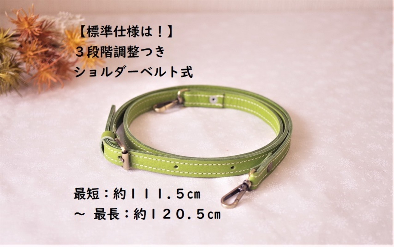 ⇒「調整カン式 ショルダーベルト * 調整幅・約130㎝~約72㎝* 1.5センチ幅」への