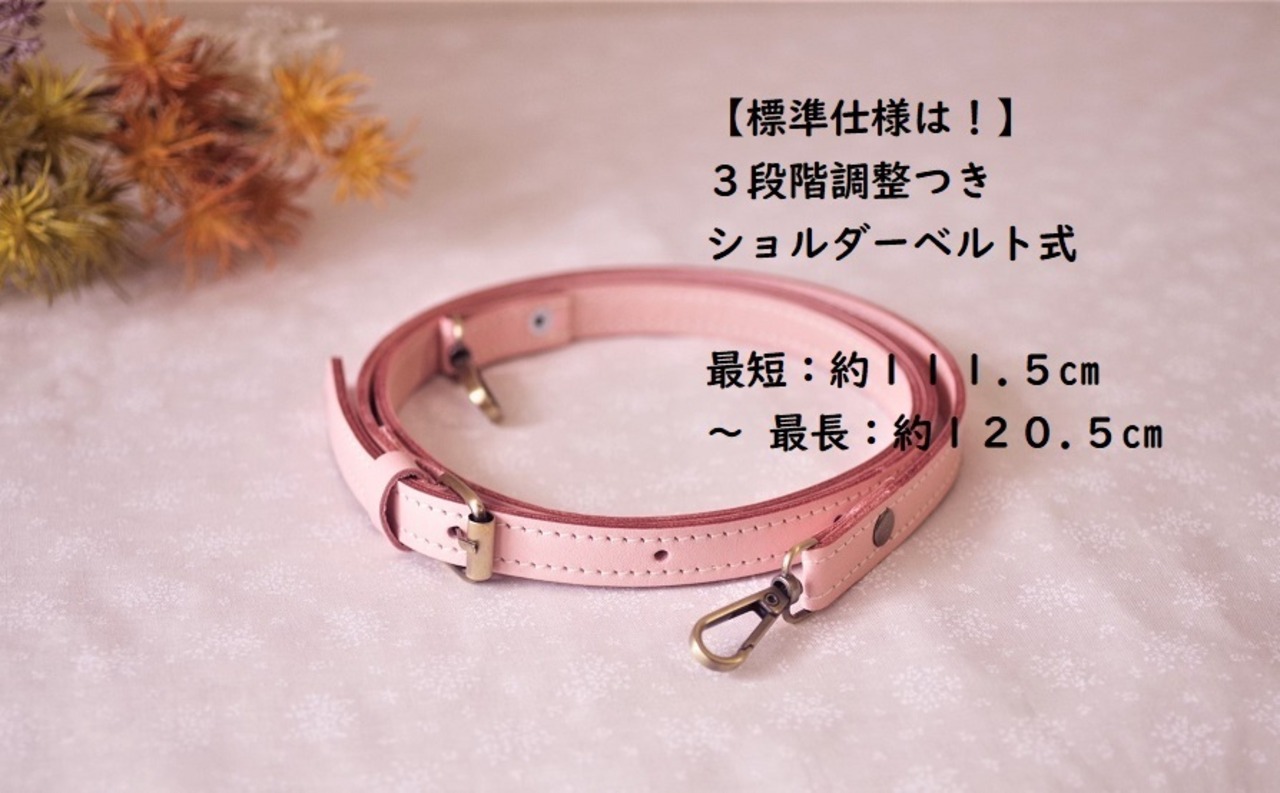 ⇒「調整カン式 ショルダーベルト * 調整幅・約130㎝~約72㎝* 1.5センチ幅」への