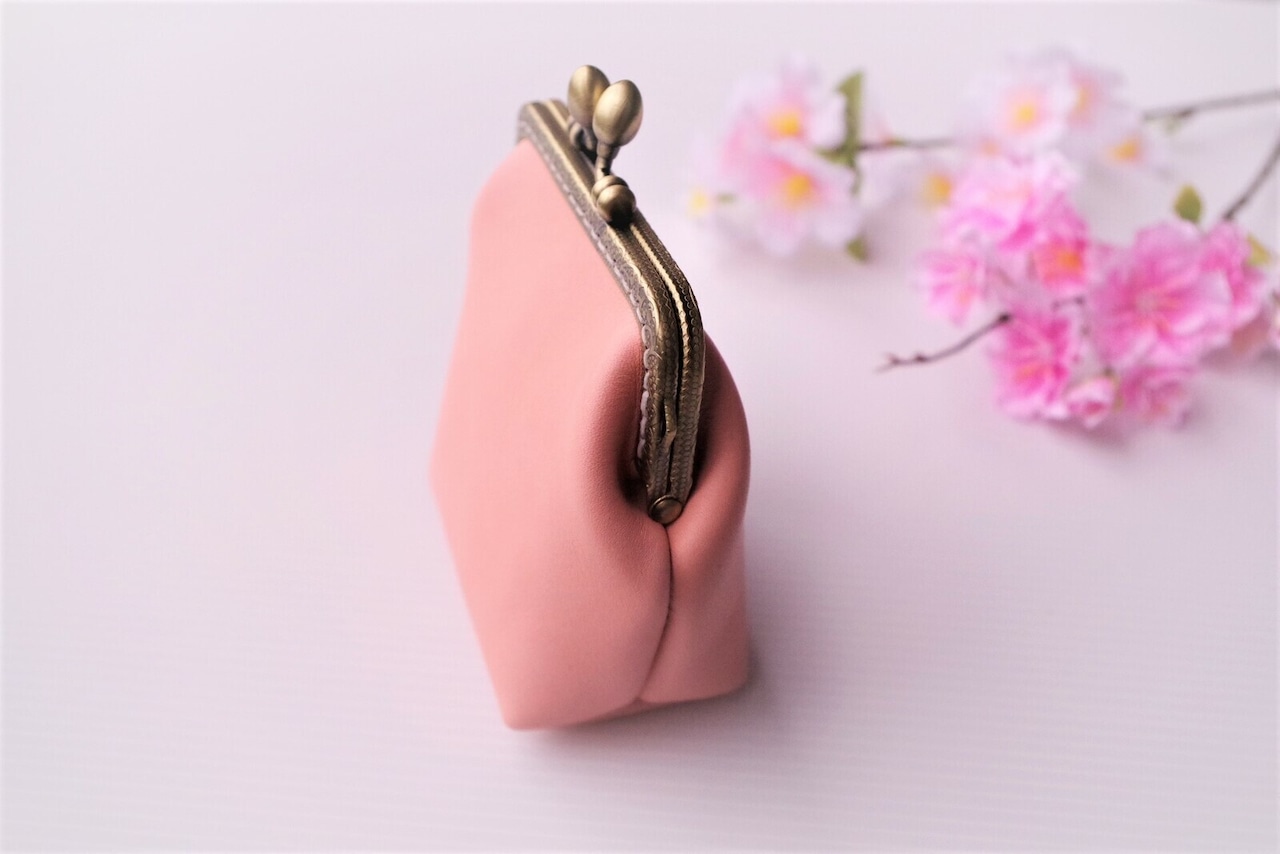 ~お豆みたいな可愛いげんこ~ 『 がま口 』桜ピンク(口金10.5㎝タイプ)