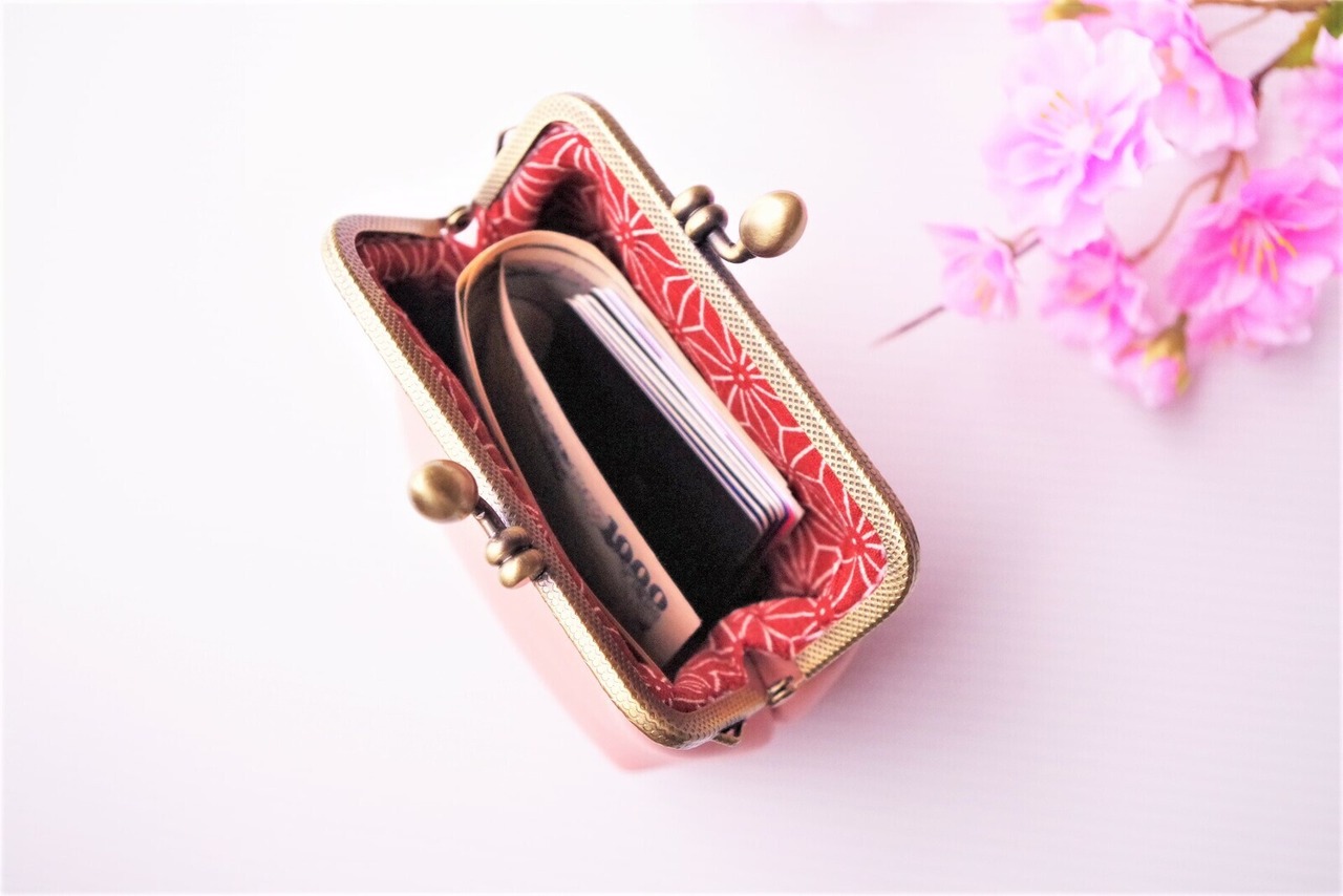 折り畳んだお札やカードなども収納していただける便利ながまくちです。