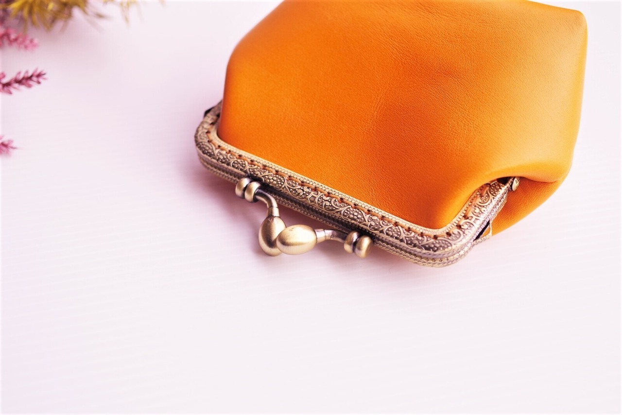 ~お豆みたいな可愛いげんこ~ 『 がま口 』濃キャメルオレンジ(口金10.5㎝タイプ)